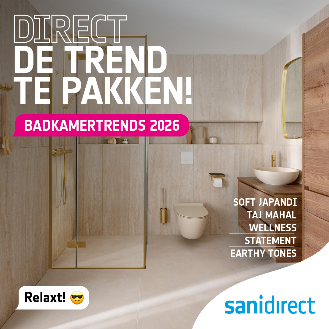 Ontdek de badkamertrends van 2026 bij Sanidirect. Van warme kleuren tot afgeronde hoeken; laat je inspireren en geef jouw badkamer een frisse, moderne look. Mis deze trends niet en zet de eerste stap naar jouw nieuwe badkamer!